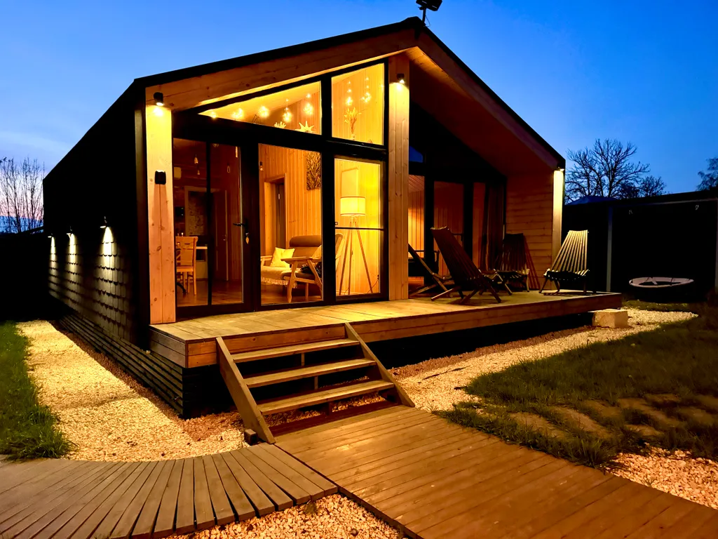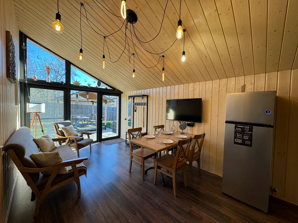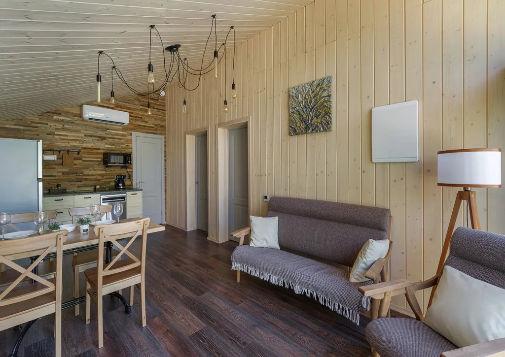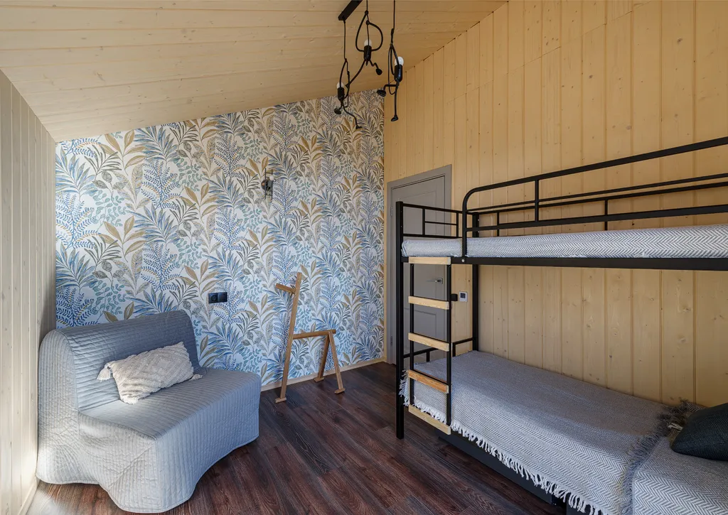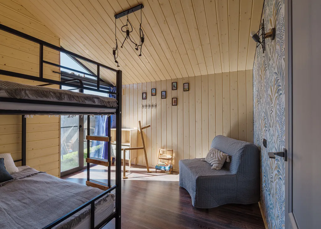 Дом имеет 2 спальни (взрослую и детскую), большую кухню-гостиную.