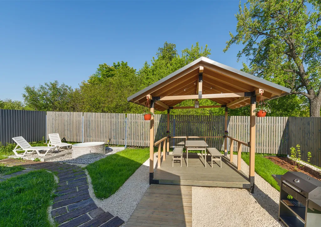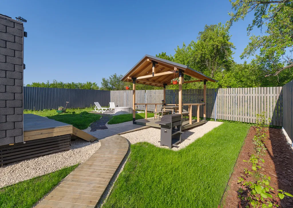 Открытая веранда с отдельным выходом из кухни и взрослой спальни.