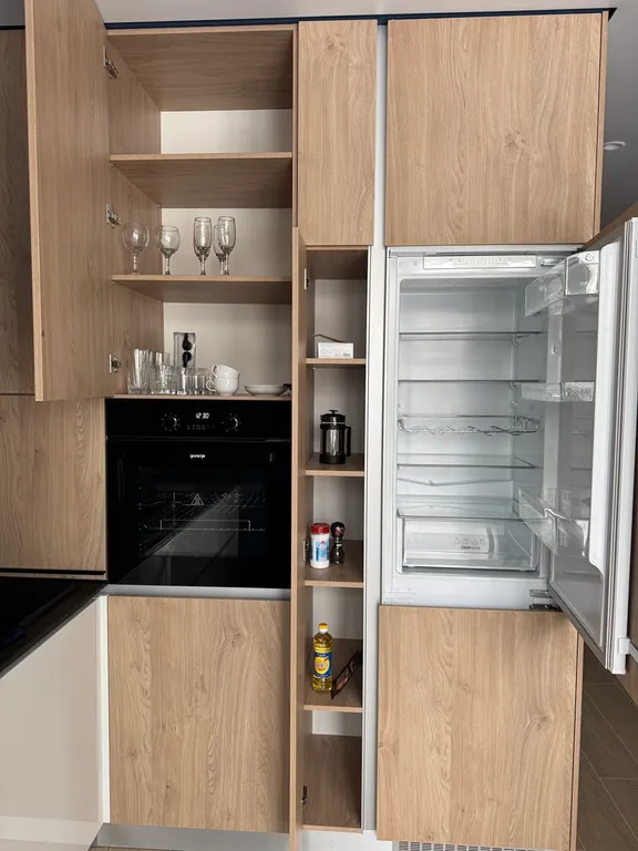 Полностью оборудованная кухня (духовой шкаф, микроволновая печь, чайник, столовые приборы, кастрюля, сковородка). В ванной комнате мягкие полотенца, тапочки, гигиенические одноразовые принадлежности. Всегда чистое и комфортное бельё.