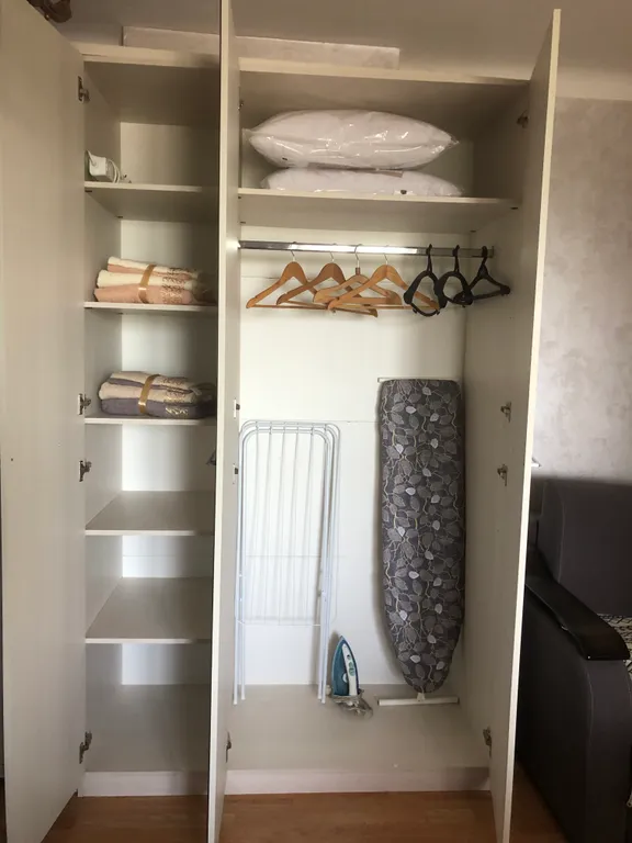 Большой шкаф для вещей и чемоданов + гладильная доска с утюгом.