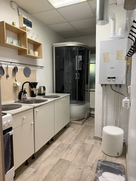 Практичный санузел – душевая кабина, бойлер для горячей воды.