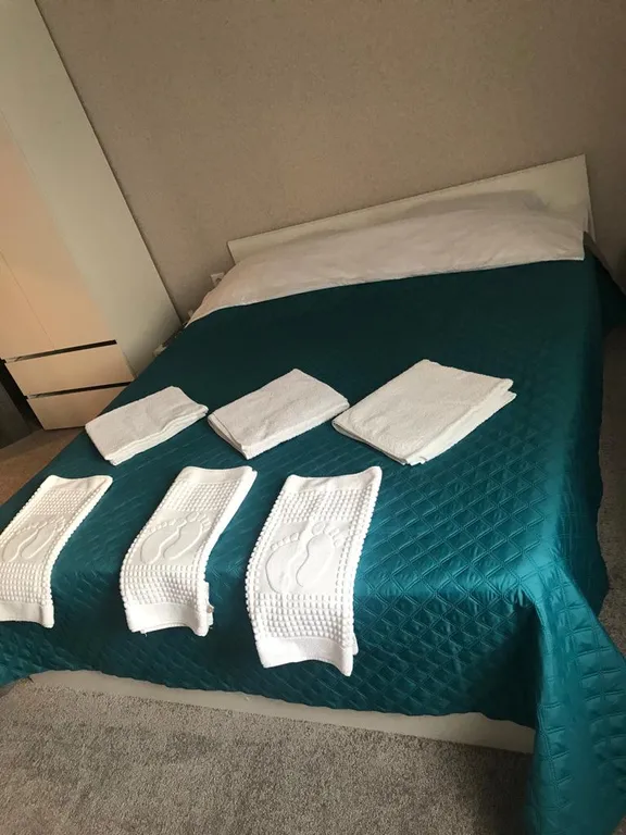 2 спальни с двуспальной кроватью и раскладным большим диваном, постельными принадлежностями, полотенцами.