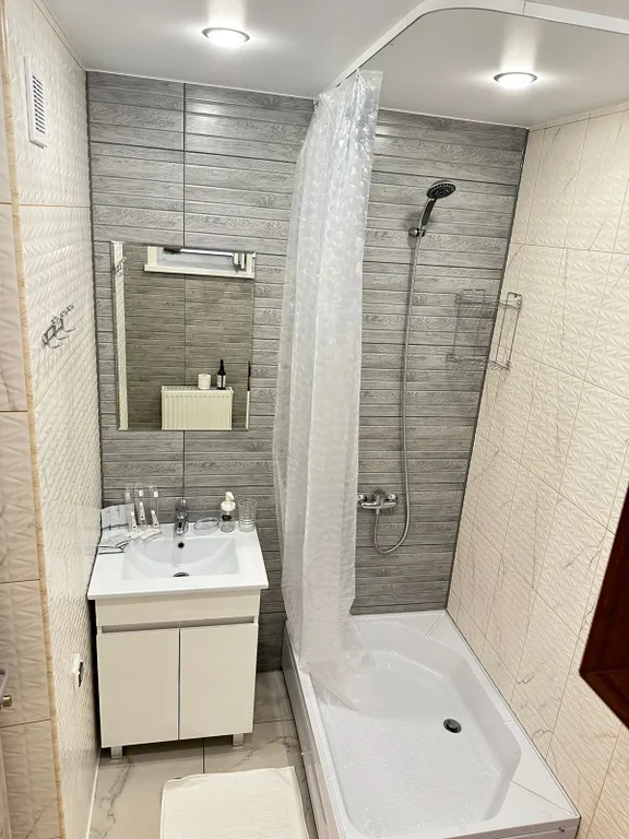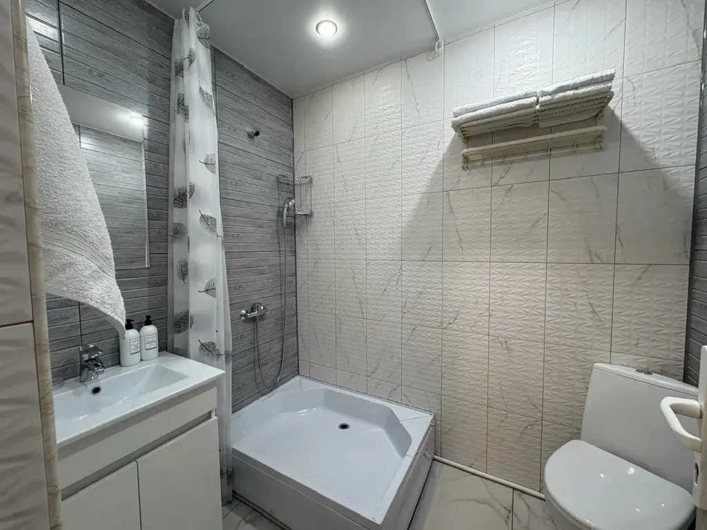 В ванной комнате душ, туалет, горячая, холодная вода постоянно, полотенца-ковры для ног.
