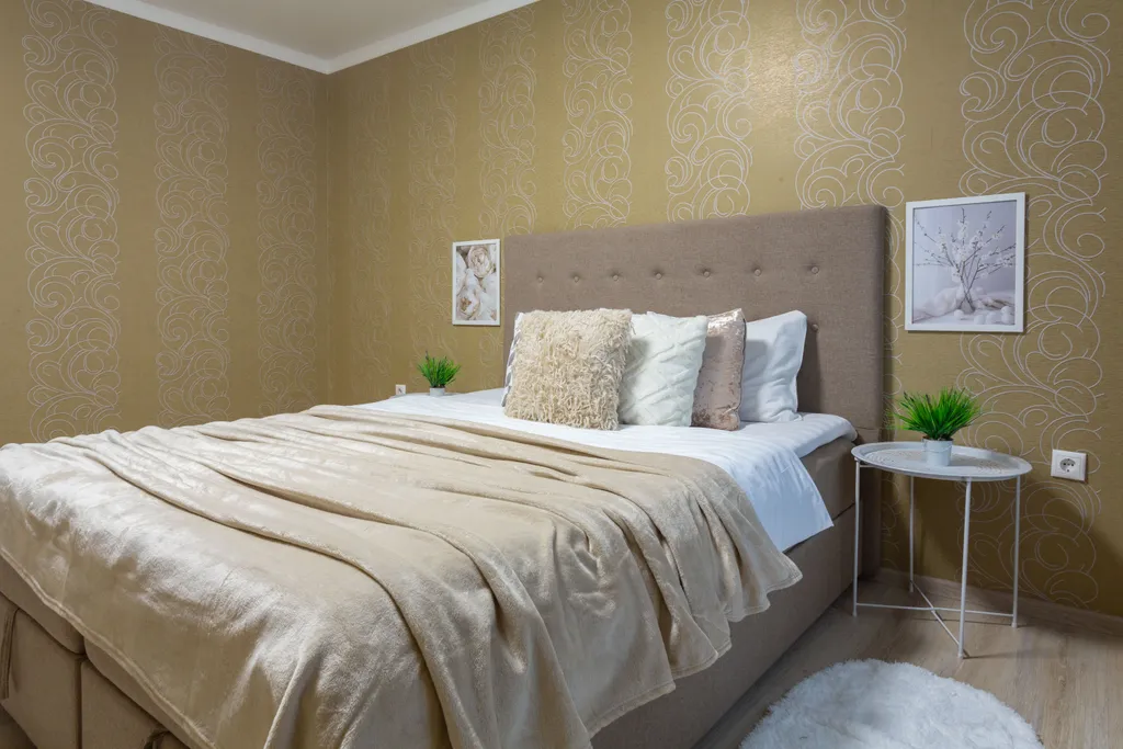 Спальня: белоснежное бельё, одноразовые тапочки, утюг, гладильная доска.