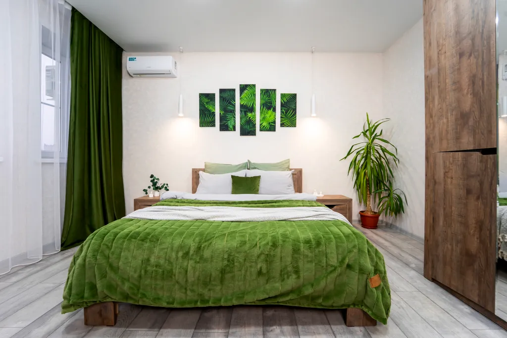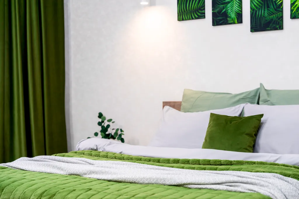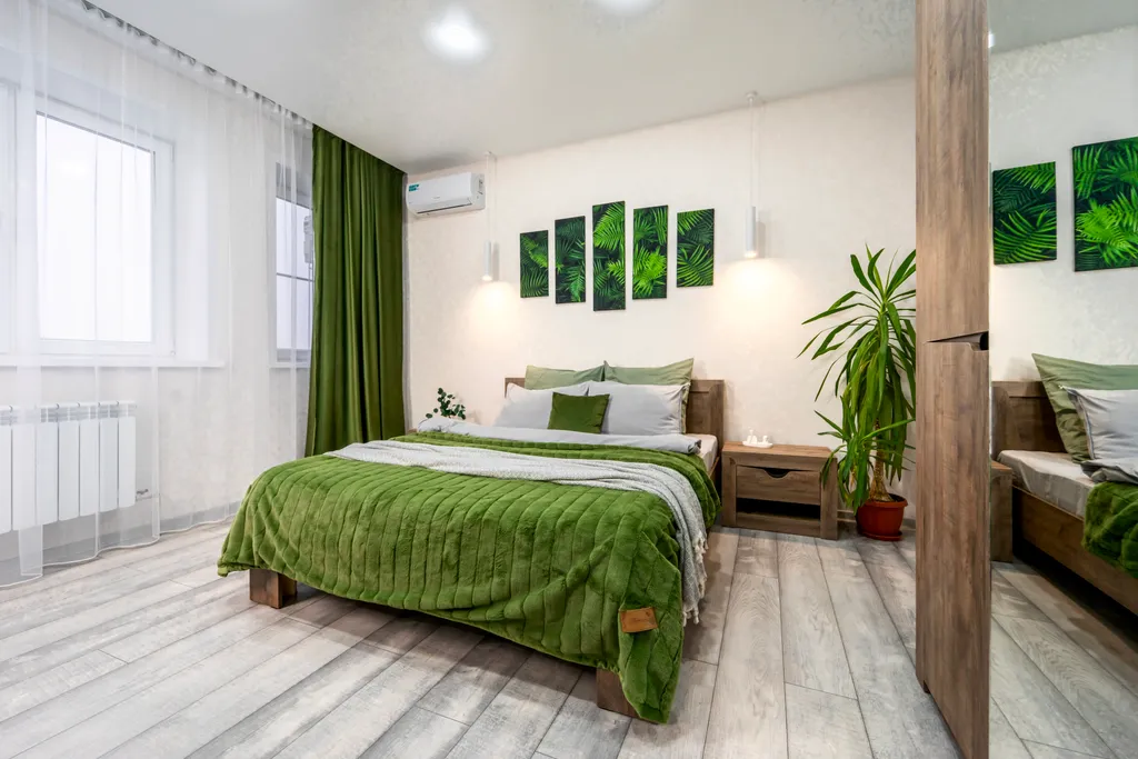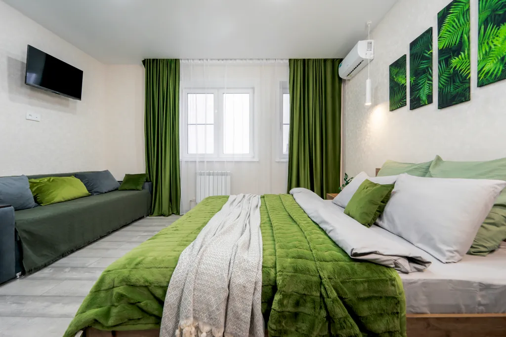 Просторная спальня с комфортной кроватью, мягкими подушками и приятным постельным бельём.
