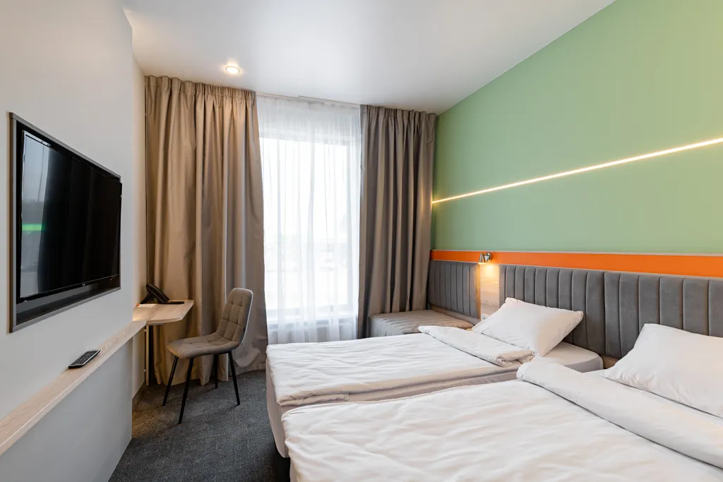Для комфортного отдыха в номерах используются светонепроницаемые шторы и улучшенная звукоизоляция. Доступ к высокоскоростному интернету и рабочий уголок позволяют оперативно и комфортно решать рабочие вопросы.