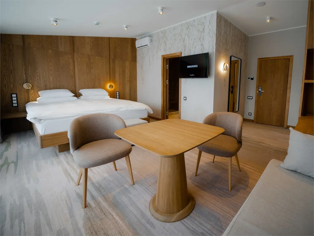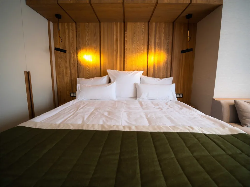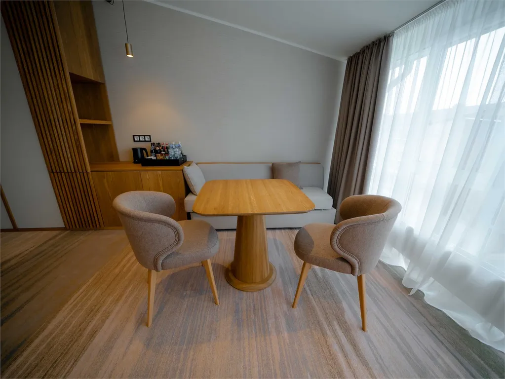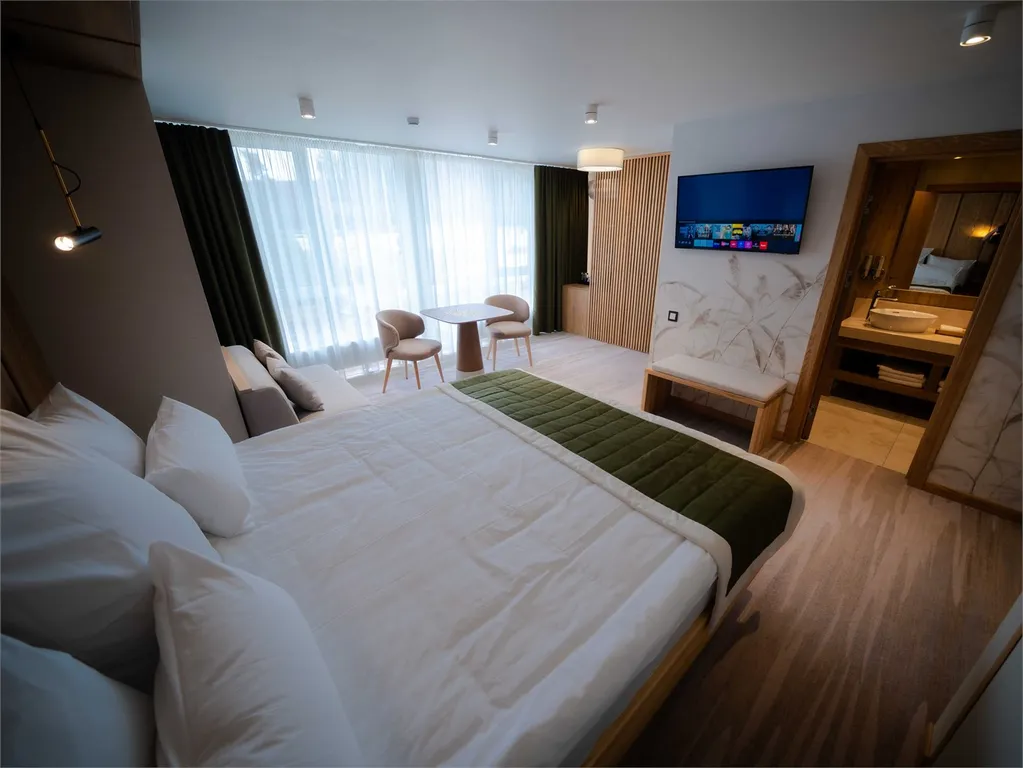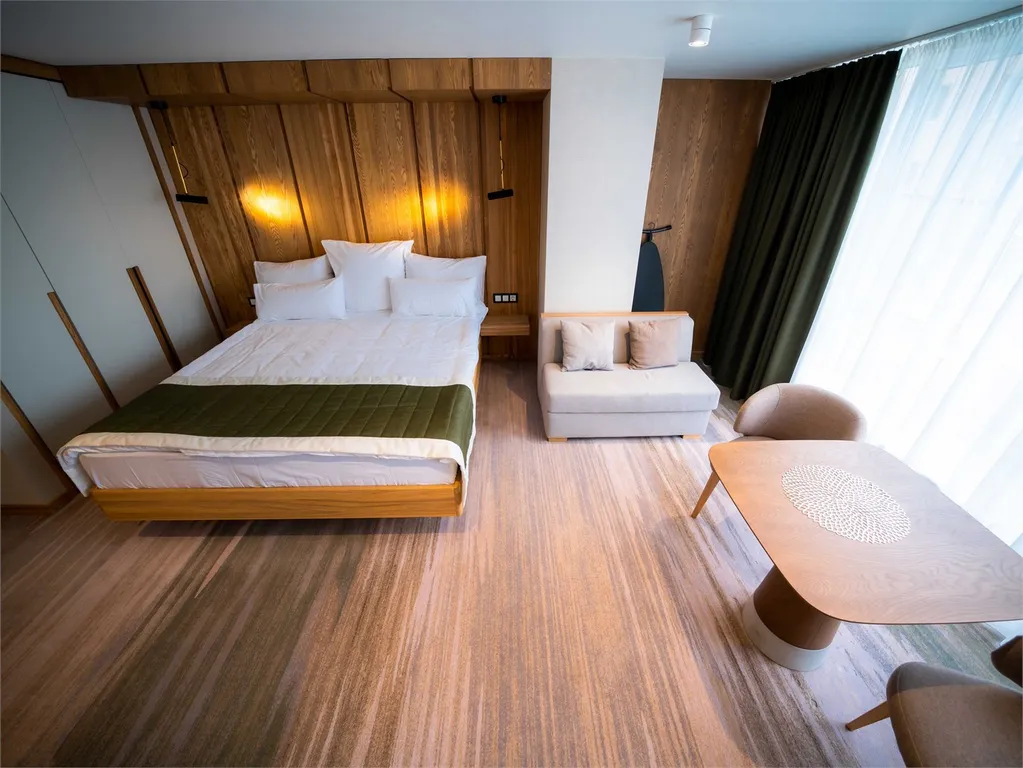 Номера общей площадью 30 м2 имеют одну двуспальную кровать размера king-size и будут комфортными для размещения двух человек, с возможностью организации дополнительных спальных мест. Грамотное зонирование номеров данной категории включает спальную зону, возможность организации рабочего пространства и зону для отдыха и расслабления. Роскошный текстиль и постельные принадлежности позволят насладиться каждым мгновением.